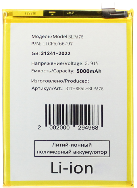 У нас вы можете купить Аккумулятор (акб) для Realme C61/Note 60 (BLPA75) (Премиум), просто оформите заказ на сайте или позвоните по телефону +79051663333. К вашим услугам пункт самовывоза в Орле и доставка по всей России.
